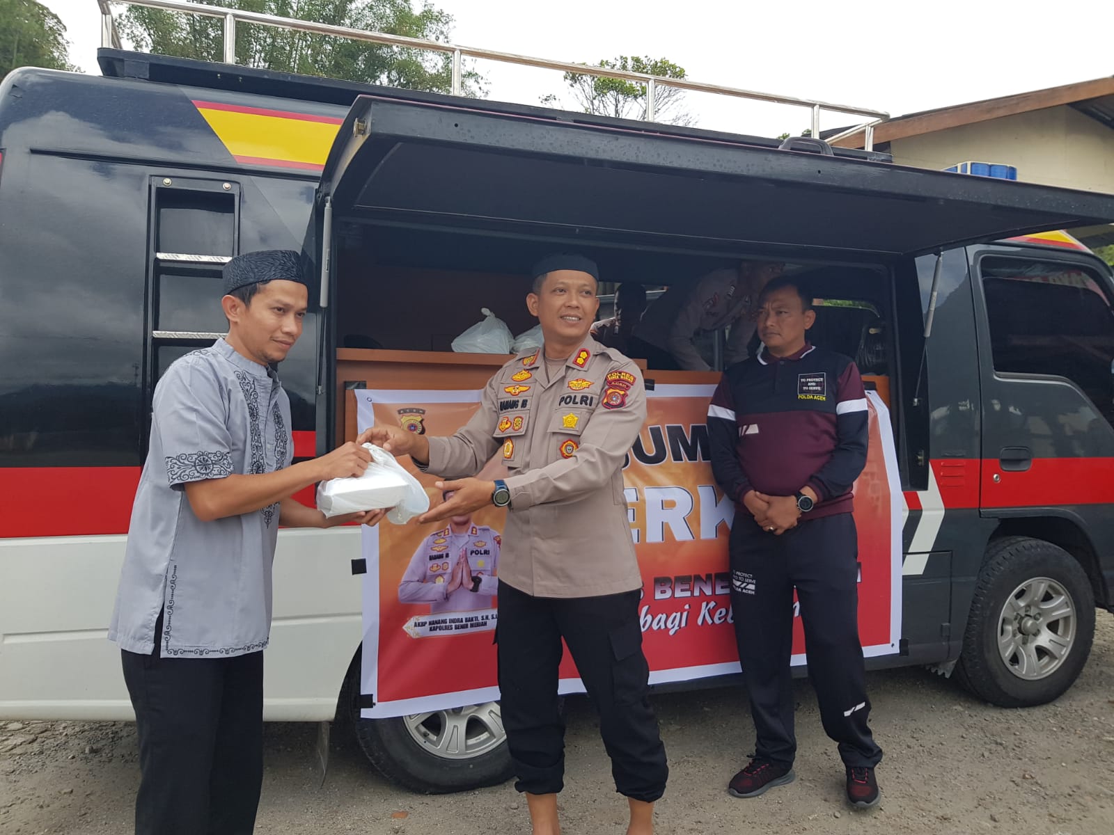 Ucapan terima kasih yang disampaikan oIeh Imam Masjid Al-Mukminun kampung Burni Telong serta sangat memberikan apresiasi kepada Kapolres Bener Meriah AKBP Nanang Indra Bakti, S.H., S.I.K, dan jajaran Kepolisian Resor Bener Meriah kegiatan jum’at berbagi kasih ini sungguh luar biasa dilaksanakan dan sangat baik direspon oleh masyarakat jamaah shalat Jum’at.