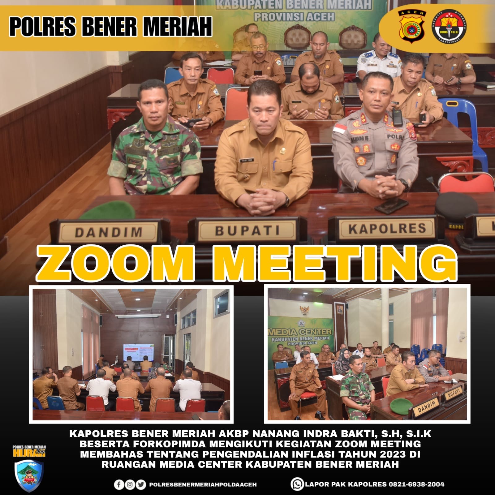 Zoom meeting yang diikuti oleh Kapolres Bener Meriah beserta forkopimda tersebut membahas tentang pengendalian Inflasi tahun 2023.