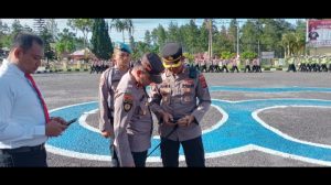 Kapolres Bener Meriah bersama Kasi Propam Polres Bener Meriah pada saat selesai pelaksanaan Apel pagi, melaksanakan pengecekan Handphone Personil Polres Bener Meriah untuk memastikan agar tidak ada Personil yang bermain Judi Online, Senin (22/5/2023)