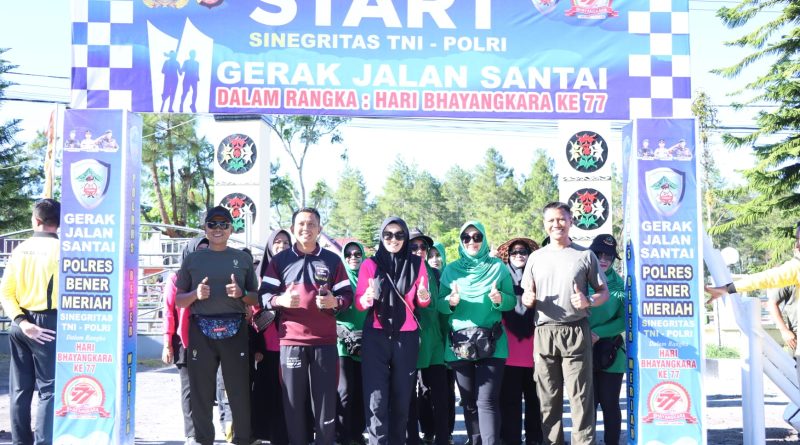 Redelong- Dalam rangka hari Bhayangkara ke 77, Kepolisian Resor Bener Meriah menggelar olah raga bersama TNI-Polri dalam rangka mempererat sinergitas dan tali silaturahmi, Sabtu (27/5/23).