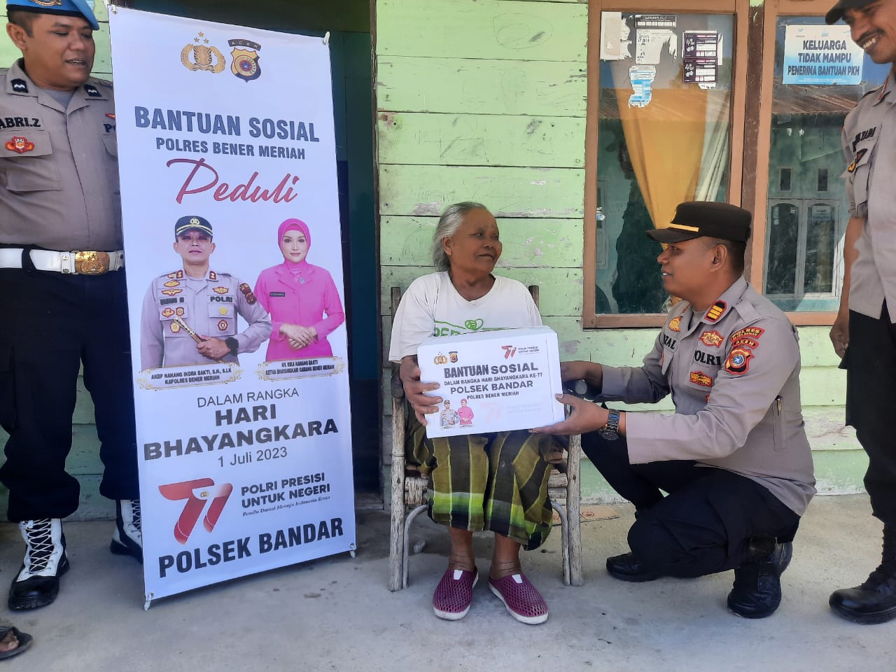 Kapolres Bener Meriah AKBP Nanang Indra Bakti, SH, SIK melalui Kapolsek Bandar AKP Jufrizal, S.H., M.H mengatakan, kegiatan yang dilakukan oleh Polsek Bandar tersebut merupakan bentuk kepedulian Polri terhadap warga yang membutuhkan terlebih lagi dalam momen menyambut hari Bhayangkara ke 77.