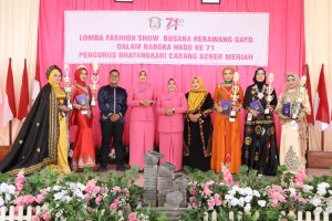 Redelong-Sejumlah anggota Bhayangkari dan Polwan dari Polres Bener Meriah mengikuti lomba fashion show dalam rangka memeriahkan Hari Kesatuan Gerak Bhayangkari (HKGB) ke-71 tahun 2023.
