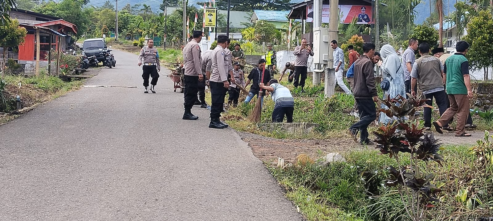 Personel Polsek Pintu Rime Gayo dan Masyarakat melaksanakan kegiatan peduli lingkungan yaitu pembersihan sampah di Kampung Blang Rakal Kecamatan Pintu Rime Gayo Kabupaten Bener Meriah, Kamis (13/7/2023)