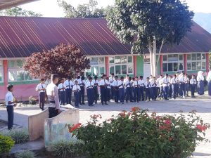 Redelong – Dalam rangka hari Anak Nasional, Bhabinkamtibmas Polsek Bandar Aipda Wuldan Mahdi melaksanakan Program Saweu Sekulah dengan menjadi Pembina Upacara dan memberikan arahan di SMPN 2 Bandar Kampung Petukel Blang Jorong Kecamatan Bandar Kabupaten Bener Meriah, Senin (24/7/2023)