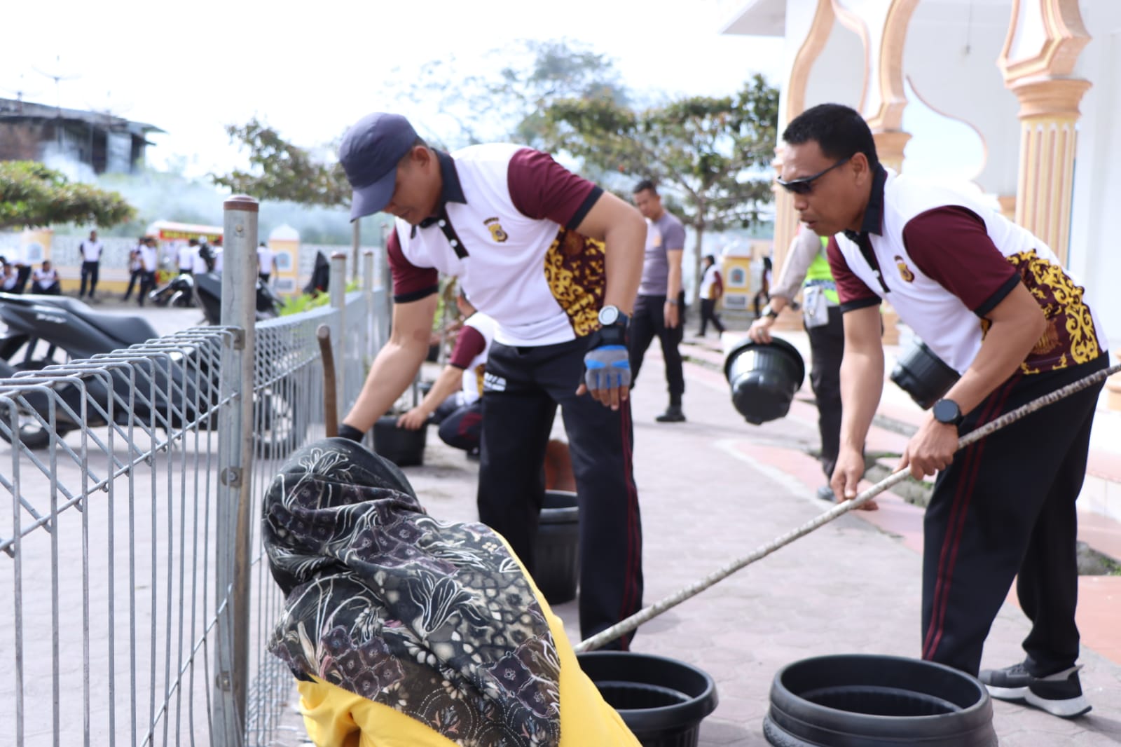 “Kegiatan nya berupa membersihkan lingkungan masjid luar dan dalam,” kata AKBP Nanang