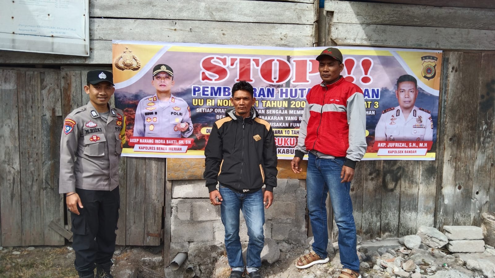Pada kesempatan tersebut AKP Jufrizal juga menghimbau kepada seluruh lapisan masyarakat Kecamatan Bandar Kabupaten Bener Meriah agar tidak melakukan pembakaran saat membuka lahan pertanian, apa bila melihat atau mengetahui terjadinya kebakaran lahan dan hutan agar segera melaporkan kepada pihak kepolisian atau petugas pemadam kebakaran dan tidak membuang puntung rokok di sembarang tempat.