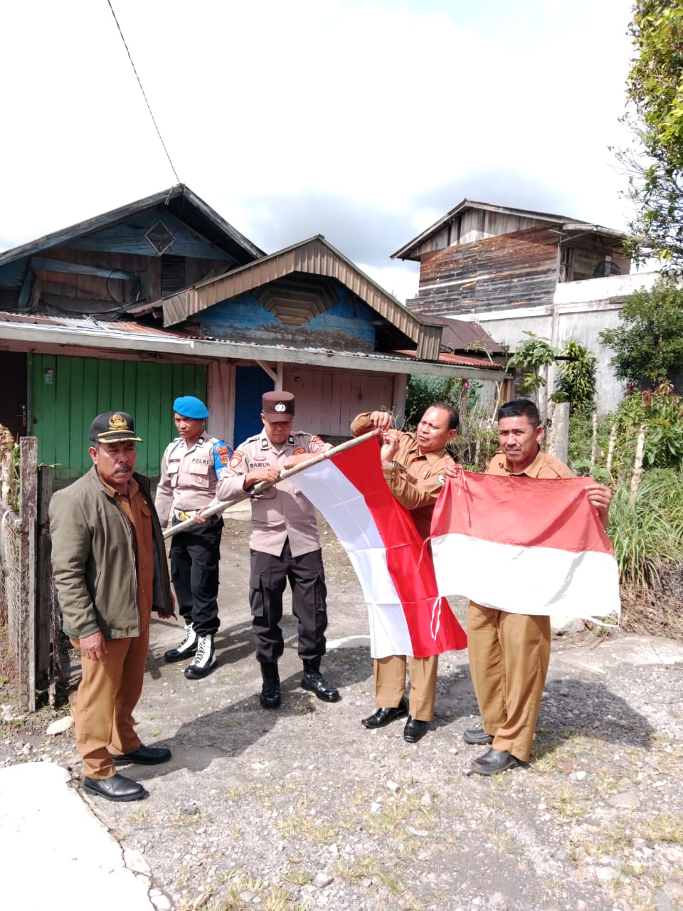 Redelong- Waka Polsek Permata Aiptu Bary Permana Barus, S.H bersama sekcam Permata memberikan bendera merah putih kepada masyarakat, dan mengganti bendera merah putih yang telah usang dengan bendera merah putih yang baru.