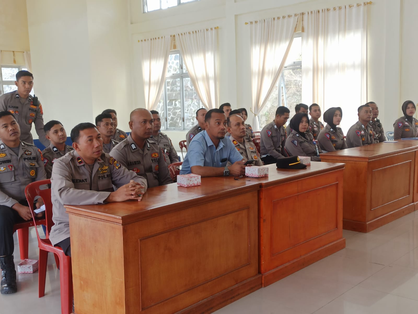 Redelong – Polres Bener Meriah gelar pelatihan fungsi dalam rangka meningkatkan kemampuan Personel Polres Bener Meriah dengan materi Fungsi Lalu Lintas Dalam rangka Pengamanan Rangkaian Pemilu tahun 2024 yang dilaksanakan di Aula Endra Dharma Laksana, Selasa (15/8/2023).