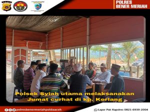 Redelong- Kapolsek Syiah Utama melaksanakan kegiatan Jum’at Curhat terkait program Quick Wins Presisi bersama Masyarakat yang bertempat Kecamatan Syiah Utama, Kabupaten Bener Meriah, Jumat (01/8/2023)