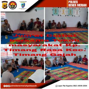 Redelong- Kapolsek Timang Gajah melaksanakan kegiatan Jum’at Curhat terkait program Quick Wins Presisi bersama Masyarakat yang bertempat Kecamatan Timang Gajah, Kabupaten Bener Meriah, Jumat (8/9/2023)