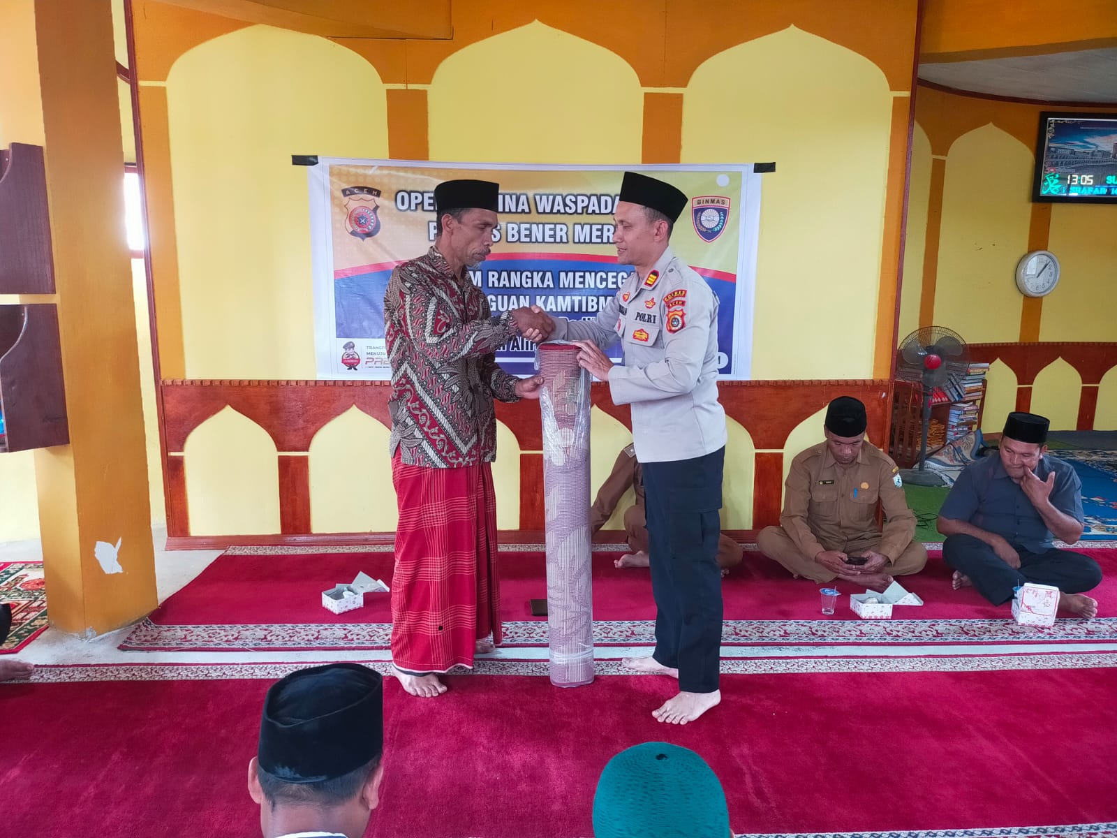 Operasi ini tak hanya berhenti pada penyuluhan semata. Setelah penyuluhan selesai, kegiatan dilanjutkan dengan memberikan bantuan Sarana Kontak berupa sarana ibadah kepada pengurus Masjid Tingkem Bersatu yang terletak di Kecamatan Bukit, Kabupaten Bener Meriah.