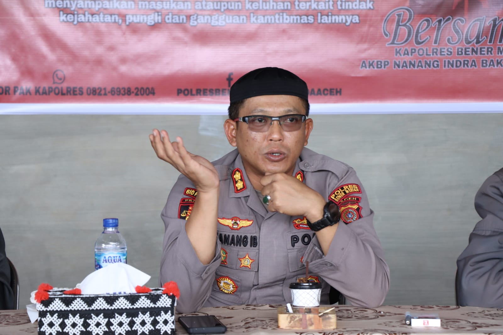 Kapolres Bener Meriah AKBP Nanang Indra Bakti, S.H., S.I.K mengatakan, Acara yang di adakan di balai masjid Baiturrahman tersebut guna menampung aspirasi masyarakat terkait masalah Kamtibmas, penegakan hukum, pelayanan Polisi dan maslah lainnya.