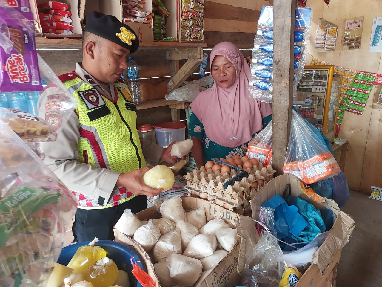 Personel Polsek Mesidah Monitoring Ketersediaan Bahan Pokok