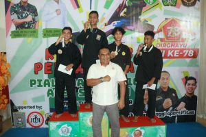 Redelong – Senin, 09 Oktober 2023. Personil Polres Bener Meriah Bripda Teguh Risa Pitro raih medali emas pada kejurkab pencak silat piala Dandim 0107 Aceh Selatan dalam rangka HUT TNI Ke-78 di Gedung rumoh agam, Tapak Tuan, Kabupaten Aceh Selatan.