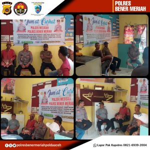 Redelong- Kapolsek Mesidah melaksanakan kegiatan Jum’at Curhat terkait program Quick Wins Presisi bersama Masyarakat yang bertempat Kecamatan Mesidah, Kabupaten Bener Meriah, Jumat (13/10/2023)