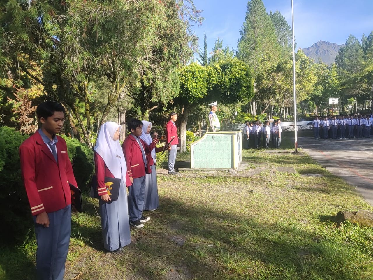Redelong- Kanit Kamsel Lantas Polres Bener Meriah Aiptu Suyanto Negehi Sekulah/ Saweu Sikulah di SMAN Unggul Binaan Bener Meriah menyampaikan pesan pesan kamtibmas kepada para siswa-siswi. Senin (30/10/2023)