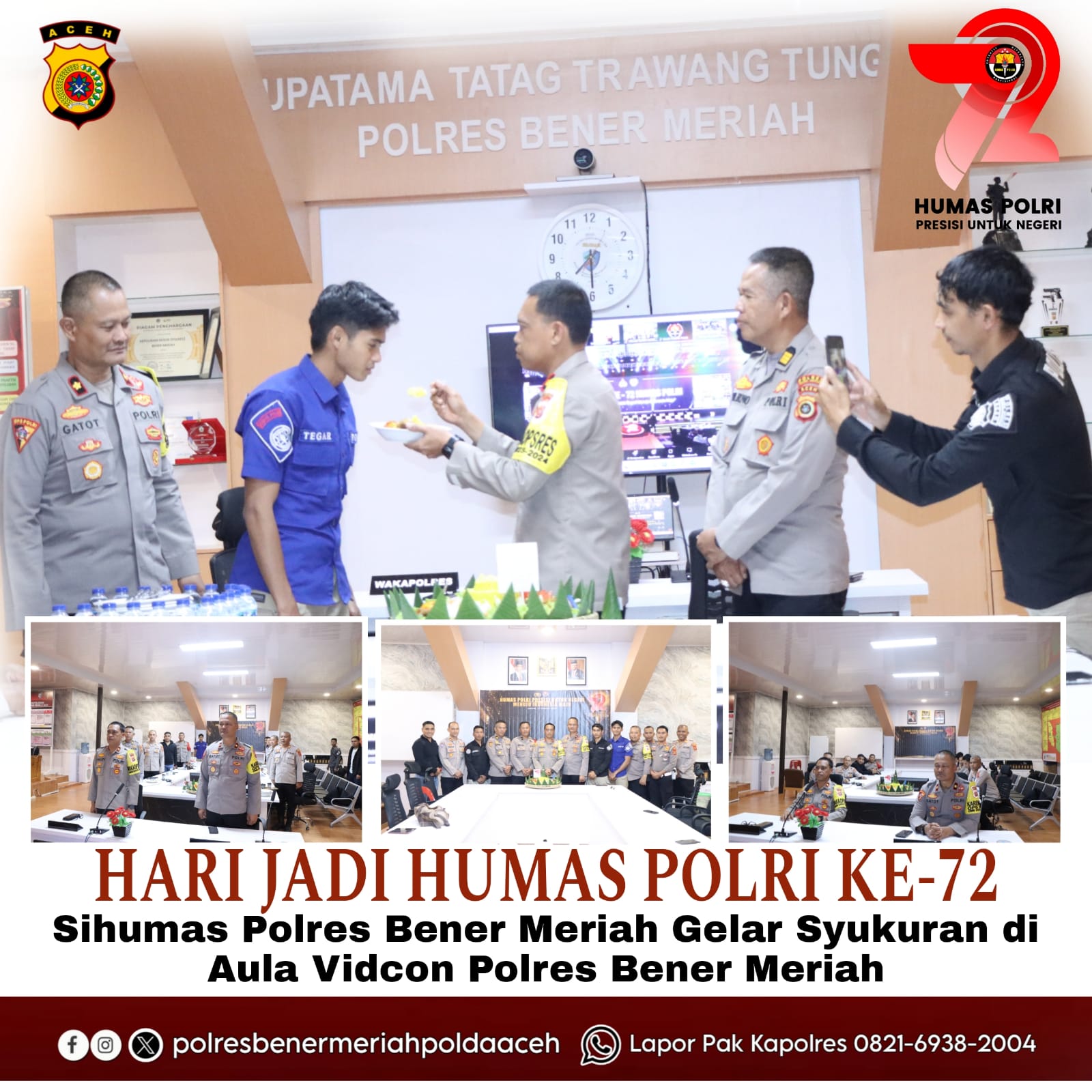 Wakapolres Bener Meriah Kompol Fauzi, mengatakan Perayaan Hari Jadi Humas Polri yang ke-72 ini menjadi ajang untuk memperkuat tali silaturahmi antara personel Sihumas Polres Bener Meriah dan melanjutkan peran mereka dalam memberikan informasi yang akurat dan transparan kepada masyarakat.