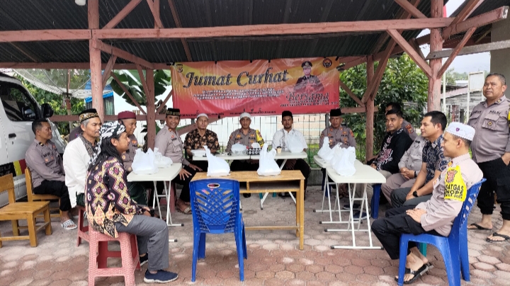 Bener Meriah – Wakapolres Bener Meriah Kompol Fauzi, SE , SIK gelar Jumat curhat di Masjid Kampung Burni Telong 85, Kecamatan Wih Pesam , Kabupaten Bener Meriah, Jumat (3/11/2023)