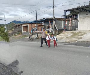 Bener Meriah- Untuk menjamin kelancaran arus lalu lintas pada jam-jam sibuk terutama di pagi hari, personel Polsek Permata Polres Bener Meriah, melaksanakan pengaturan arus lalu lintas di pagi hari, Senin (13/11/23).