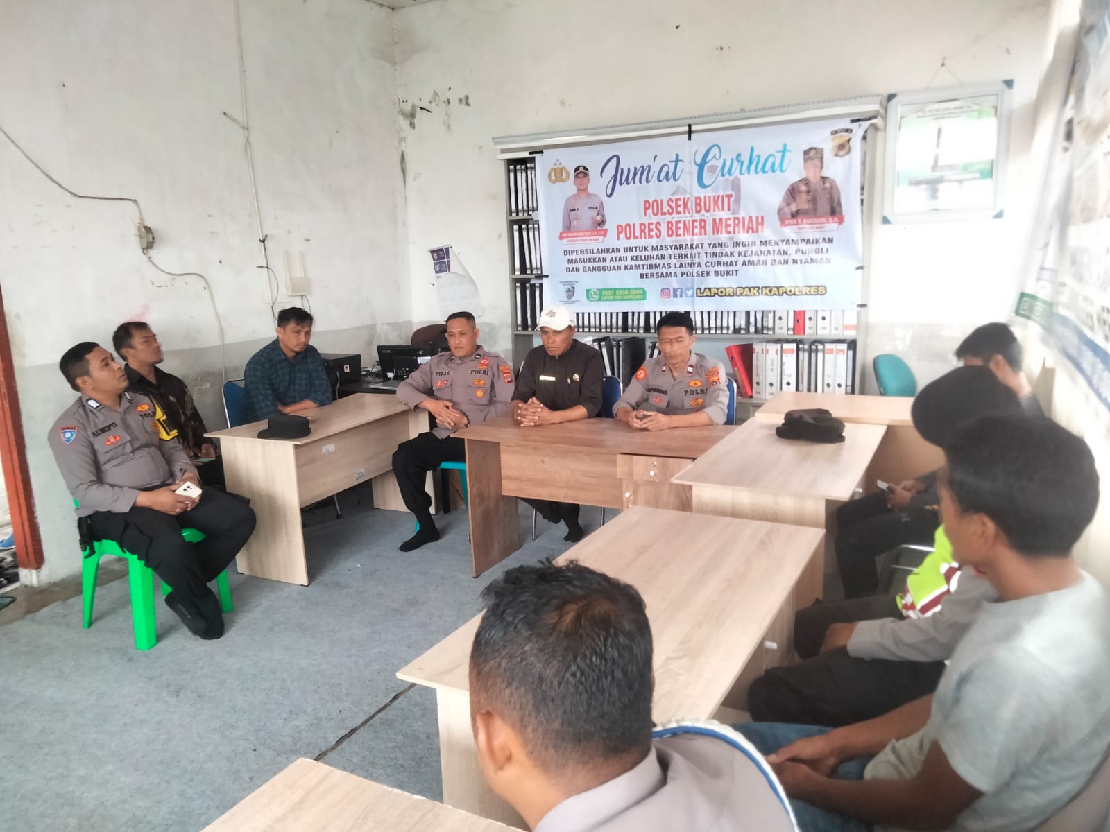 Kapolsek Bukit Iptu T Bukhari mengatakan, Jumat curhat ini dilakukan dalam rangka untuk menampung aspirasi masyarakat terkait pemeliharaan keamanan dan ketertiban masyarakat oleh personel Polri.