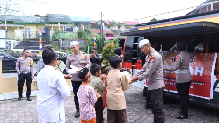 Redelong – Polres Bener Meriah Membagikan 100 kotak makanan kepada jamaah solat Jumat di Masjid Baitul Mustaqim Kampung Jamur Ujung, Kecamatan Wih Pesam, Kabupaten Bener Meriah, Jumat 15 Desember 2023.