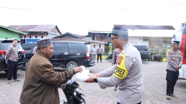 Redelong – Kapolres Bener Meriah AKBP Nanang Indra Bakti, SH, SIK Membagikan 100 kotak makanan kepada jamaah solat Jumat di Masjid Baiturrahmah Kampung Batin Wih Pongas, Kecamatan Bukit, Kabupaten Bener Meriah, Jumat 22 Desember 2023.