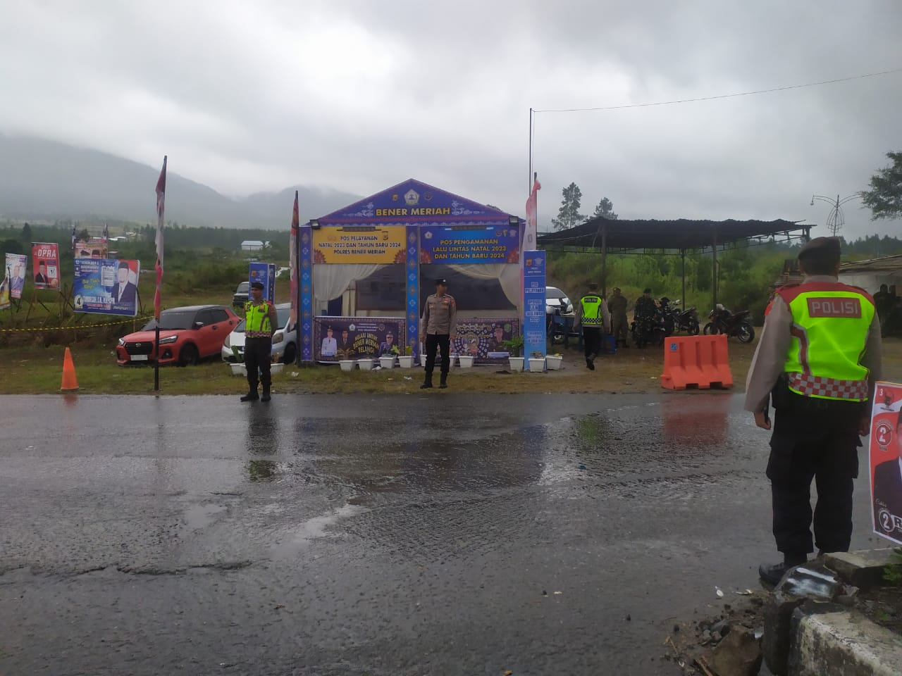 Bener Meriah- Untuk menjamin kelancaran arus lalu lintas, personel pos pelayanan Operasi Lilin Seulawah 2023 Polres Bener Meriah yang terdiri dari TNI-Polri Satpol -PP dan dinas perhubungan pengaturan arus lalu lintas di lokasi lapangan pacuan kuda dan Simpang Tritit, Kamis (28/12/23).