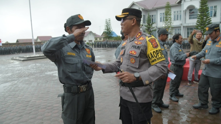 Bener Meriah-Pada hari Jumat tanggal 29 Desember 2023 sekira pukul 09.00 WIB, bertempat di halaman Sekdakab Bener Meriah telah dilaksanakan kegiatan Apel Gelar Pasukan Penyerahan Bawah Kendali Operasi (BKO) Anggota Satlinmas se Kabupaten Bener Meriah Ke Polres Bener Meriah, Dalam rangka pengamanan pemilu serentak tahun 2024.