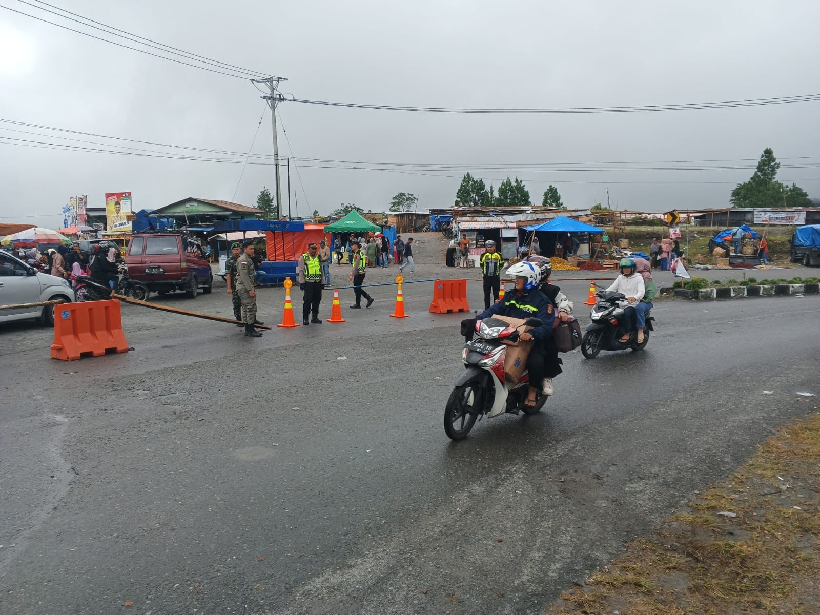 Bener Meriah- Untuk menjamin kelancaran arus lalu lintas, personel pos pelayanan Operasi Lilin Seulawah 2023 Polres Bener Meriah yang terdiri dari TNI-Polri Satpol -PP dan dinas perhubungan, melakukan pengaturan arus lalu lintas di lokasi lapangan pacuan kuda dan Simpang Tritit, Minggu (31/12/23).