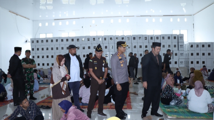 Bener Meriah-Guna memastikan keamanan logistik Pemilu 2024, Kapolres Bener Meriah, Polda Polda Aceh AKBP Nanang Indra Bakti, S.H., S.I.K., bersama Forkopimda turun langsung melakukan pengecekan di gudang KPU, bertempat di Kampung Wonosobo Kecamatan Wih Pesam Kabupaten Bener Meriah. Rabu (10/01/24).