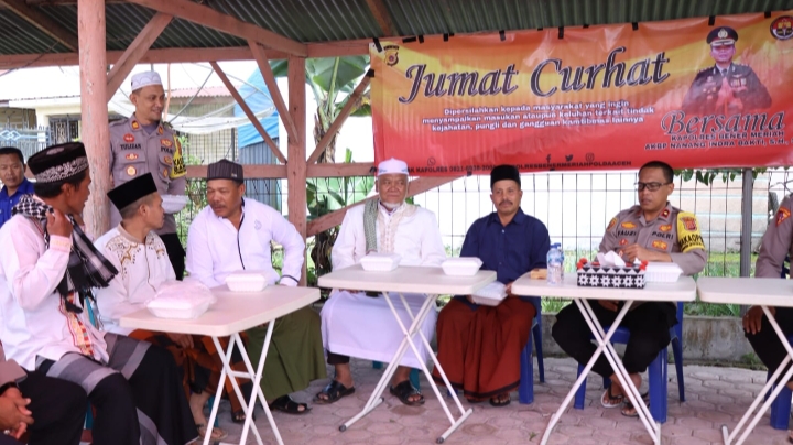 Polres Bener Meriah Gelar Jumat Curhat Di Halaman Masjid Al Mukminun Desa Burni Telong, Kecamatan Wih Pesam, Kabupaten Bener Meriah
