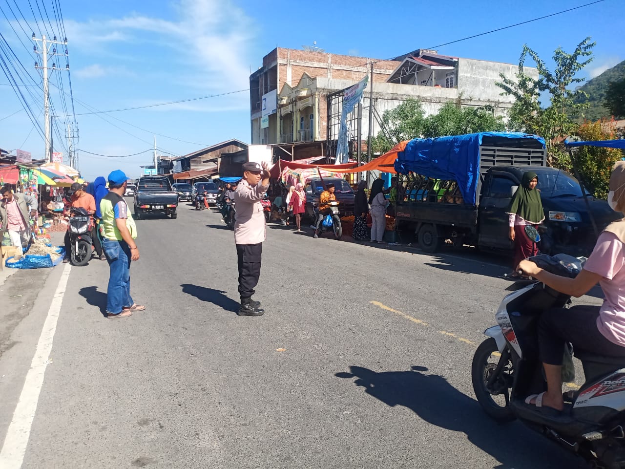 Bener Meriah – Pada Minggu (14/1/24), Personel Polsek Wih Pesam melaksanakan patroli dan mengatur arus lalu lintas di pasar tradisional Simpang Balik, Kecamatan Wih Pesam, Kabupaten Bener Meriah.