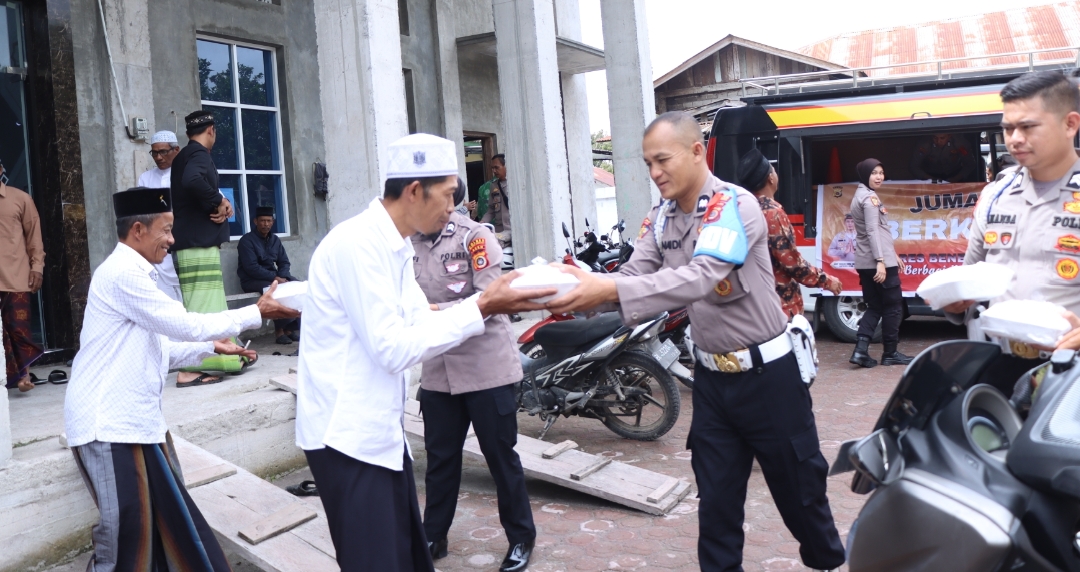 Polres Bener Meriah Bingkisan Makan Siang Kepada Jamaah Solat Jumat di Masjid Al-Muttaqin Kampung Bukit Mulie