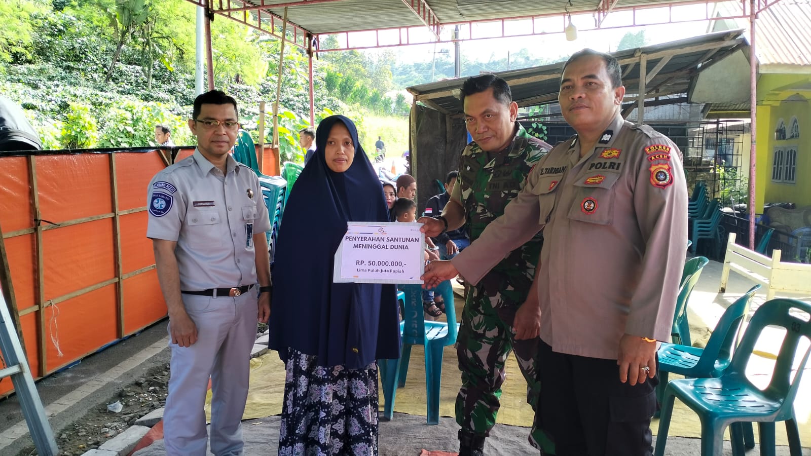 Polisi Dampingi Jasa Raharja Berikan Bantuan Kepada Keluarga Korban Laka Lantas di Bener Meriah