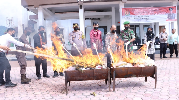 Eriadi menjelaskan, barang bukti yang dimusnahkan meliputi, Narkotika jenis Sabu seberat 114.82 Gram dan Ganja seberat 2.2 Kg. Barang bukti yang dimusnahkan tersebut telah memiliki kekuatan hukum tetap (INKRACHT).