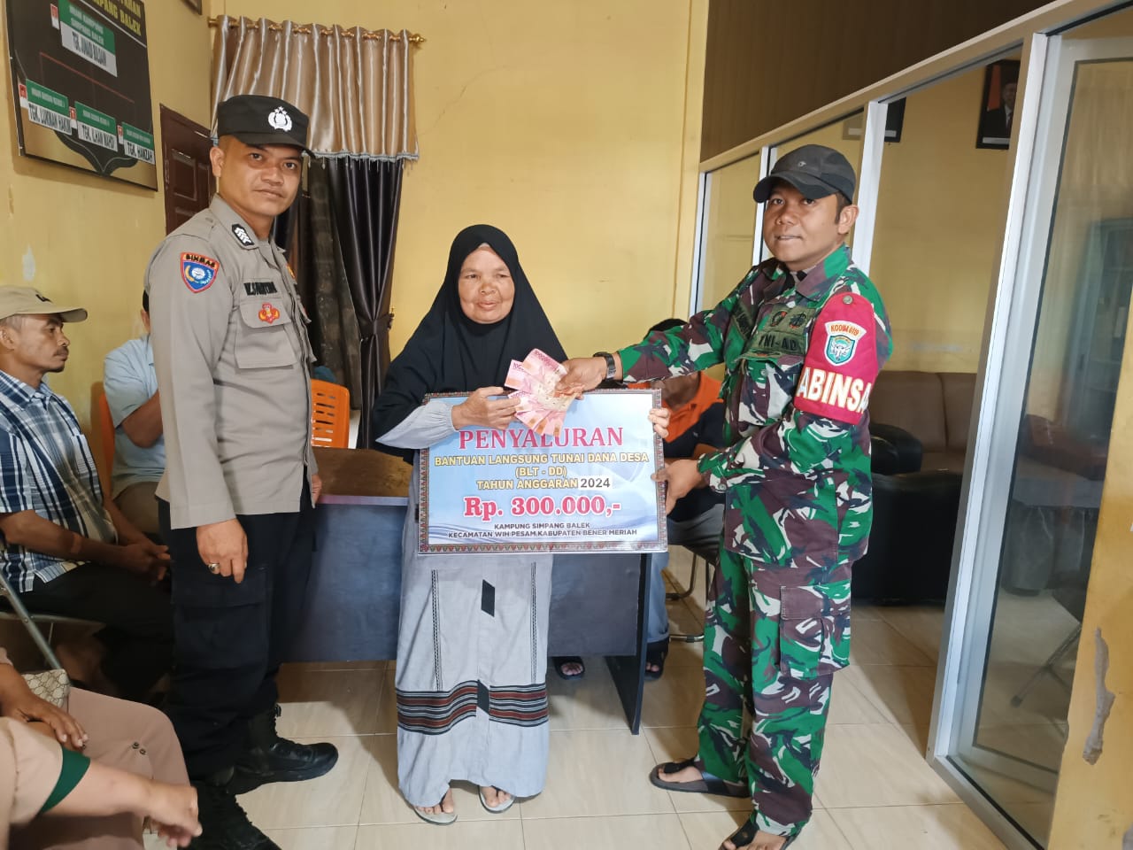 Bener Meriah- Pada hari Kamis, tanggal 8 Februari 2024, Bhabinkamtibmas dan Babinsa memantau proses penyerahan Bantuan Langsung Tunai (BLT) kepada masyarakat Kampung Simpang Balik, Kecamatan Wih Pesam, Kabupaten Bener Meriah.