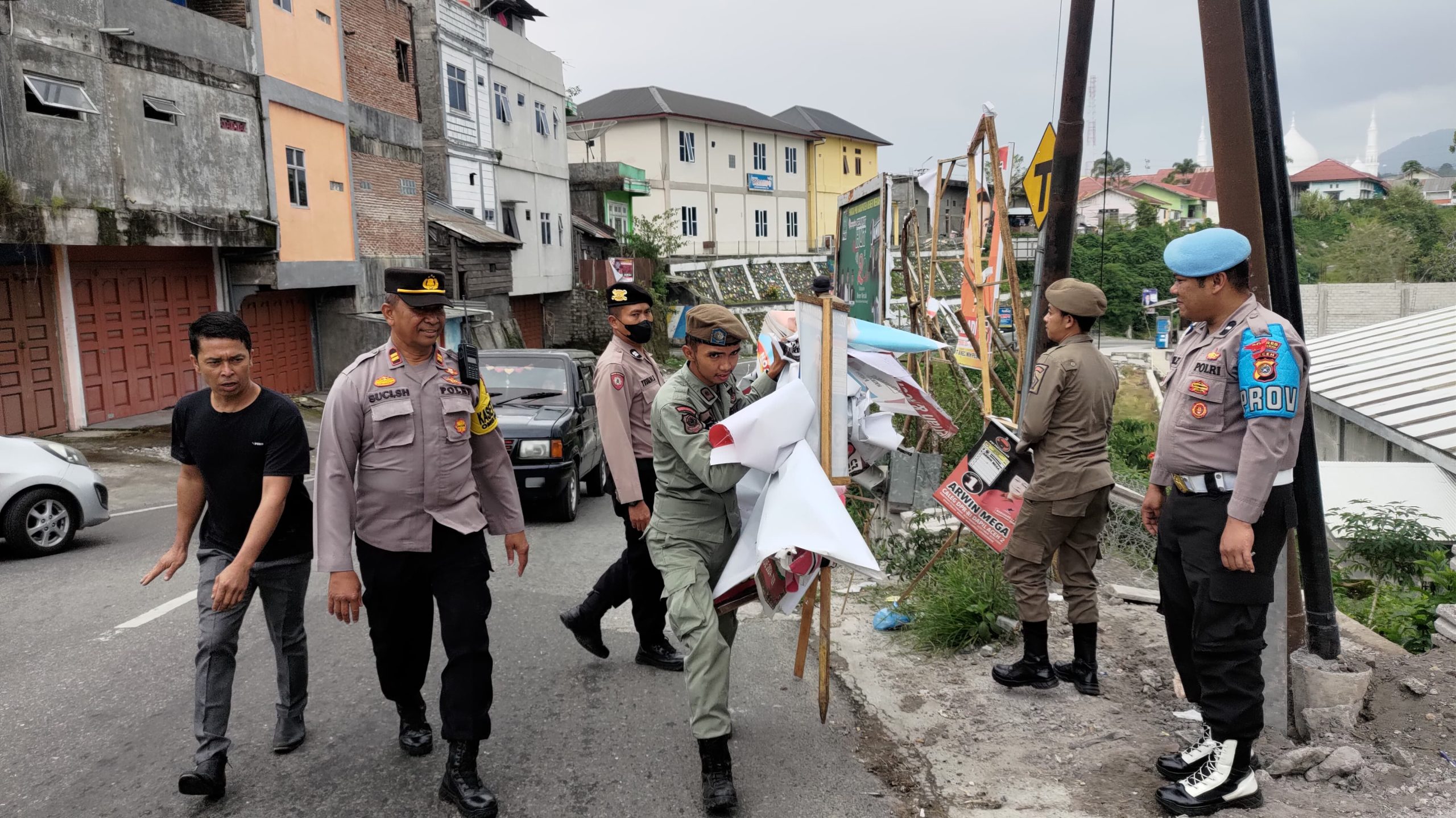 Personel Polres Bener Meriah melaksanakan pengamanan penertiban alat peraga kampanye pada tahapan masa tenang pada Pemilu 2024