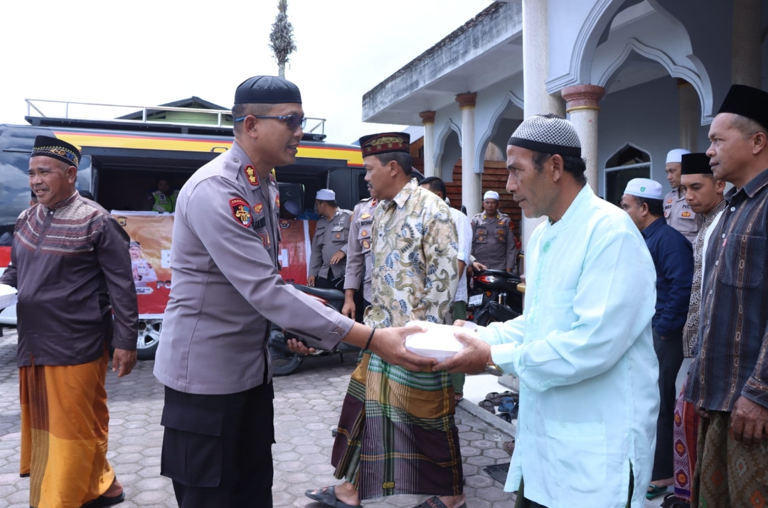 Redelong – Polres Bener Meriah bagikan 100 kotak nasi kotak kepada jamaah solat Jumat di Masjid Ushuluddin Kampung Kute Lintang, Kecamatan Bukit , Kabupaten Bener Meriah, Jumat 23 Februari 2024.