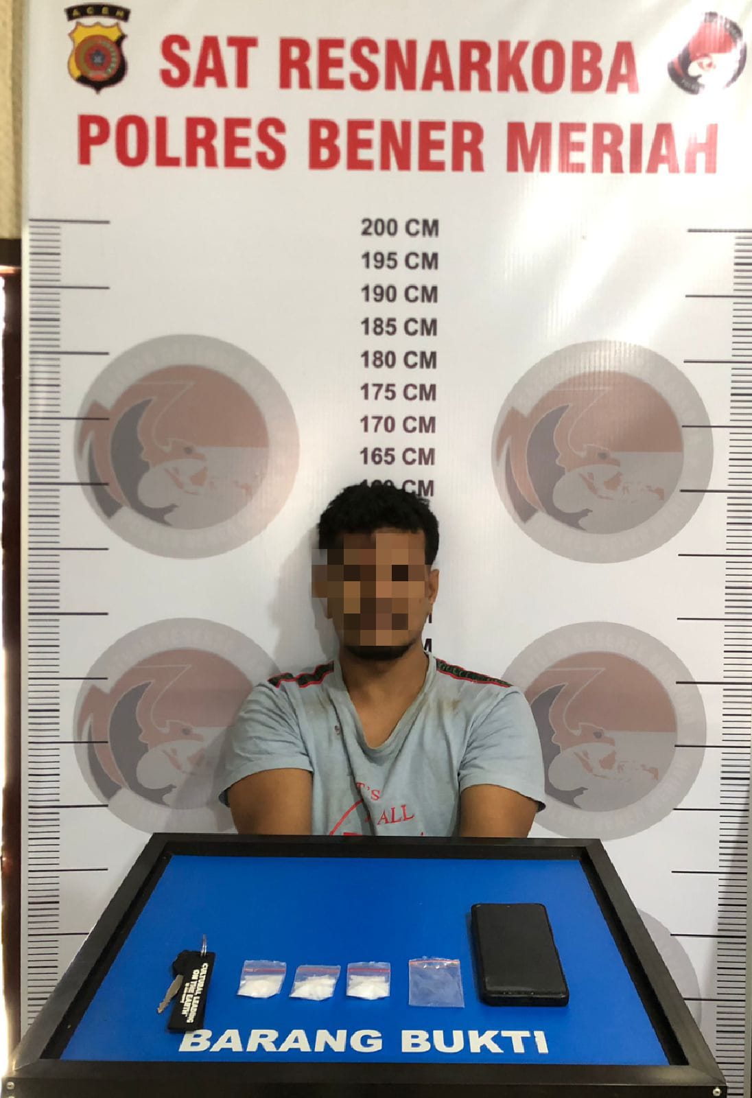 Kapolres Bener Meriah AKBP Nanang Indra Bakti mengungkapkan, berdasarkan Laporan Polisi tanggal 27 Februari, Personel Satresnarkoba Polres Bener Meriah melakukan pengembangan kasus sehingga dari hasil pengembangan anggota opsnal Resnarkoba Polres Bener Meriah berhasil mengamankan seorang laki-laki yang berinisial BA (34) warga Lhokseumawe yang sedang berada di Desa Kuala Relo, Kecamatan Gajah Putih, Kabupaten Bener Meriah.
