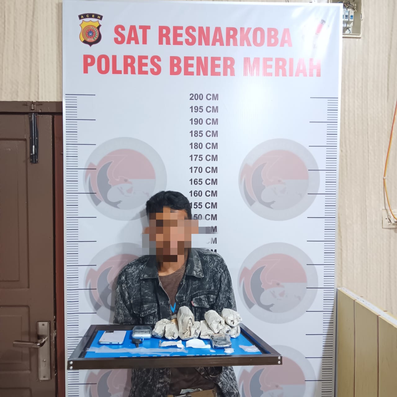 Kapolres Bener Meriah AKBP Nanang Indra Bakti, S.H., S.I.K, mengatakan, benar Satnarkoba Polres Bener mengamankan satu orang pelaku yang diduga menjadi pengedar narkotika jenis ganja dan sabu. Pelaku di amankan pada saat ada laporan masyarakat bahwasanya pelaku kerap melakukan transaksi narkoba di wilayah tersebut.
