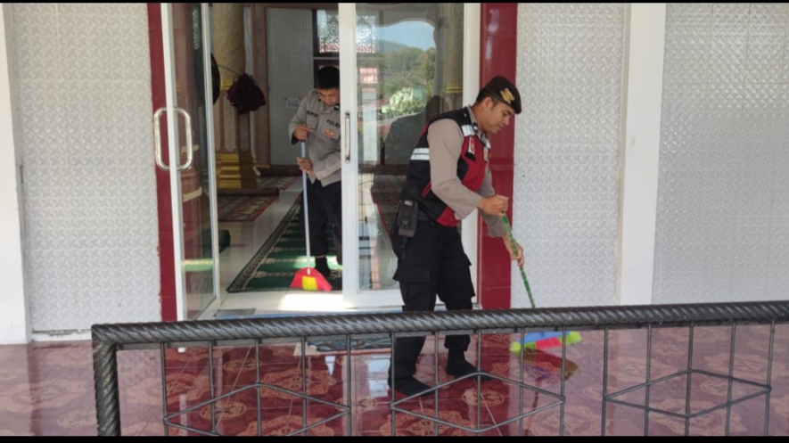 Redelong – Personel Polres Bener Meriah melaksanakan Jumat Bersih di Masjid Istiqomah, Kampung Lut Kucak, Kecamatan Wih Pesam, Kabupaten Bener Meriah, Jumat, 15 Maret 2024.