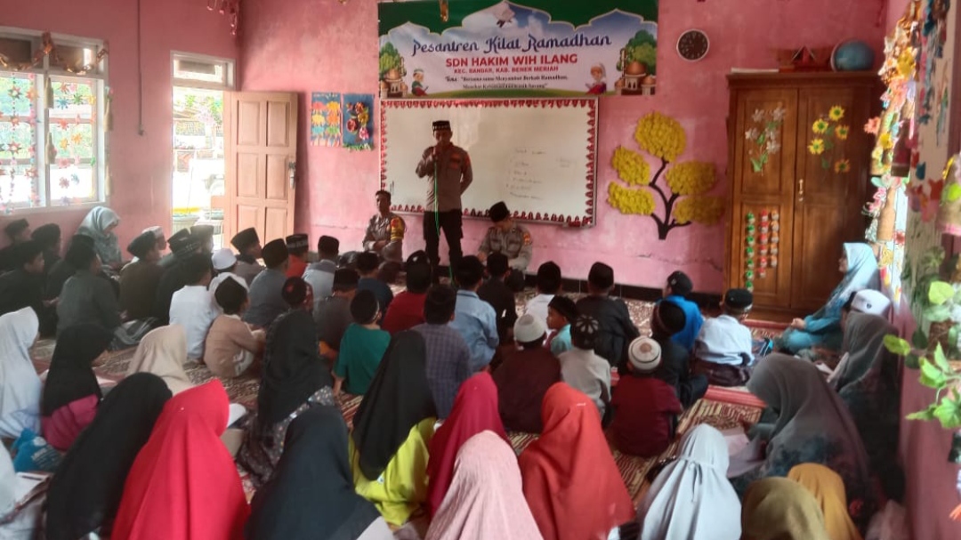 Redelong – Personel Polsek Bandar gelar pesantren kilat di SDN Hakim Wih Ilang, Kecamatan Bandar, Kabupaten Bener Meriah, Rabu, 20 Maret 2024.