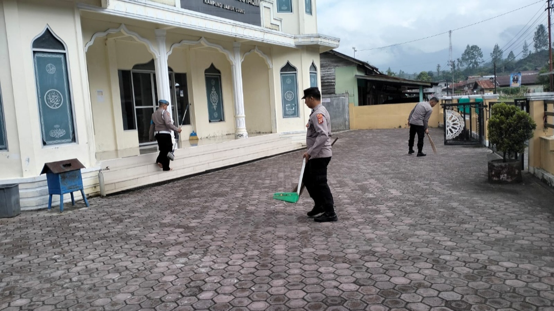 Redelong – Personel Polsek Wih Pesam melaksanakan kegiatan Jum’at bersih di Masjid Baitul Mustaqim Kampung Jamur Ujung Kecamatan Wih Pesam Kabupaten Bener Meriah, Jumat 22 Februari 2024.