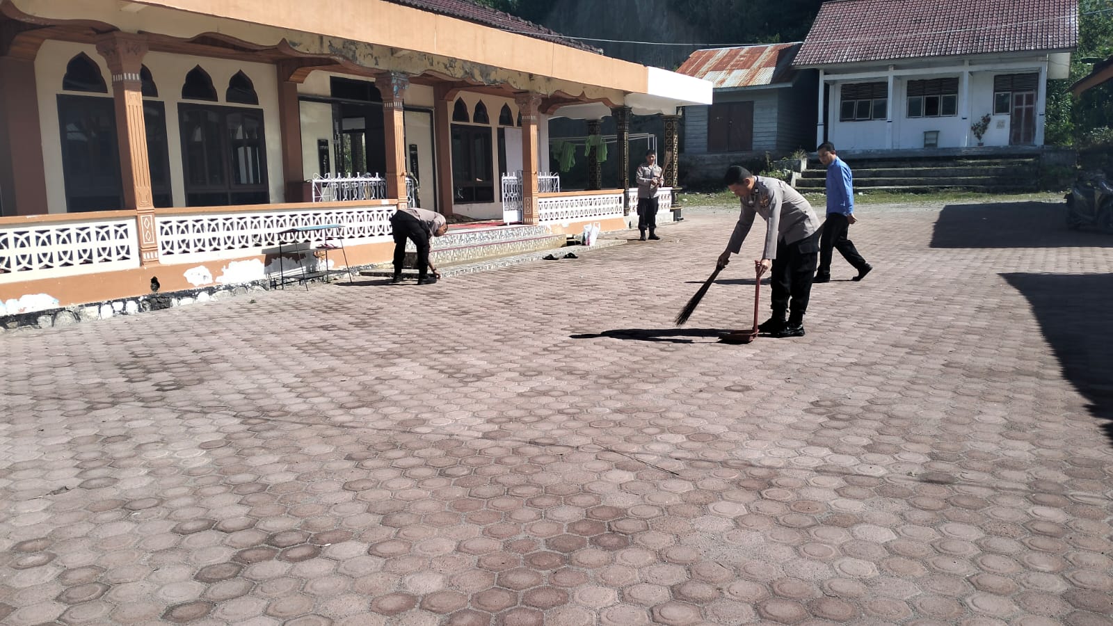 Bakti Sosial Polsek Wih Pesam: membersihkan Lingkungan Masjid Al-Mukminun Burni Telong