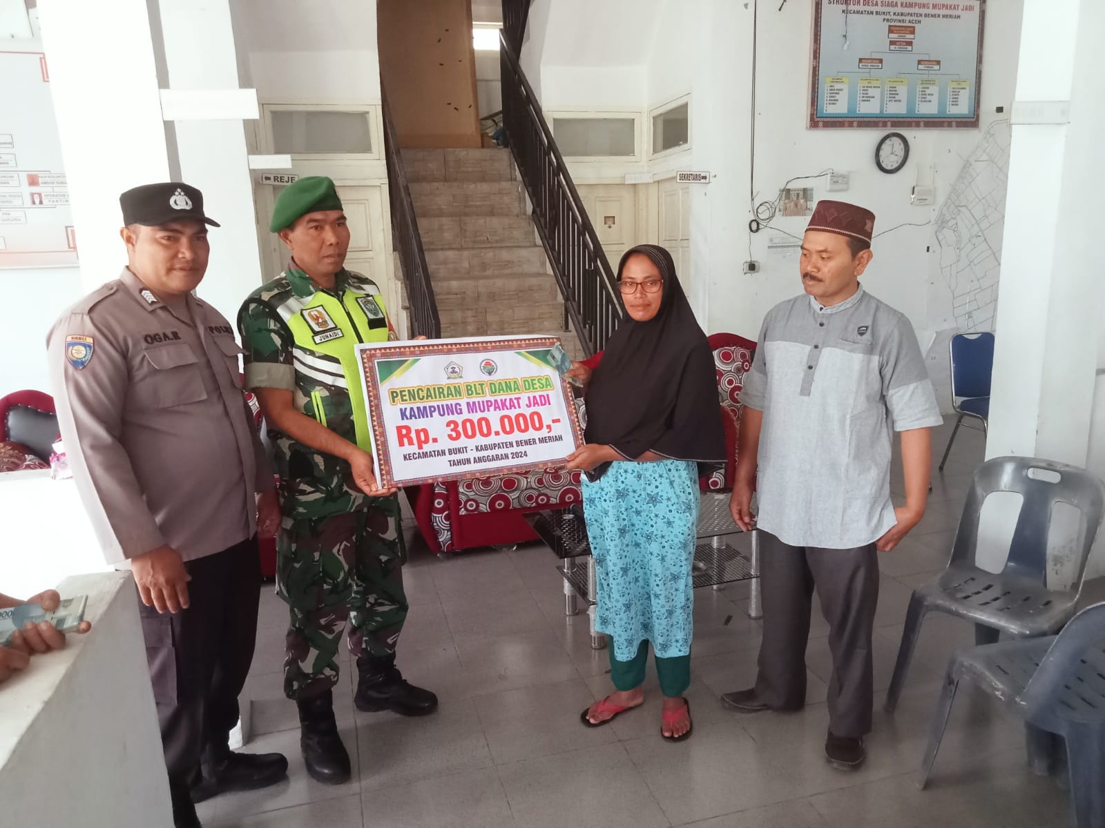 Bener Meriah – Pada Jumat, 5 April 2024, Bhabinkamtibmas dari Polsek Bukit bersama Babinsa turut memantau proses pendistribusian Bantuan Langsung Tunai (BLT) di Kampung Mufakat Jadi, Kecamatan Bukit, Kabupaten Bener Meriah.