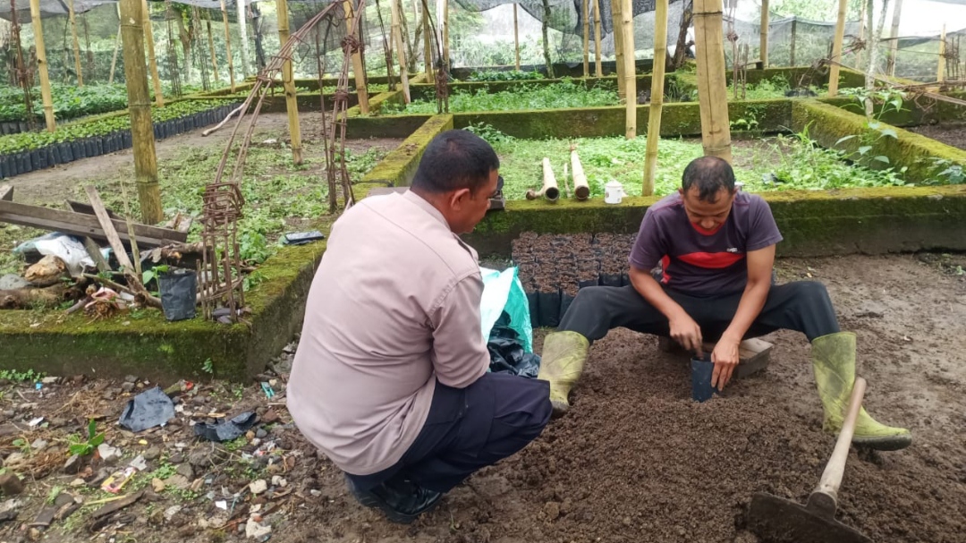 Redelong – Bhabinkamtibmas Polsek Wih Pesam Bripka Zainal Abidin sambangi Desa Sukarame Atas, Kecamatan Wih Pesam, Kabupaten Bener Meriah, Sabtu 20 April 2024.