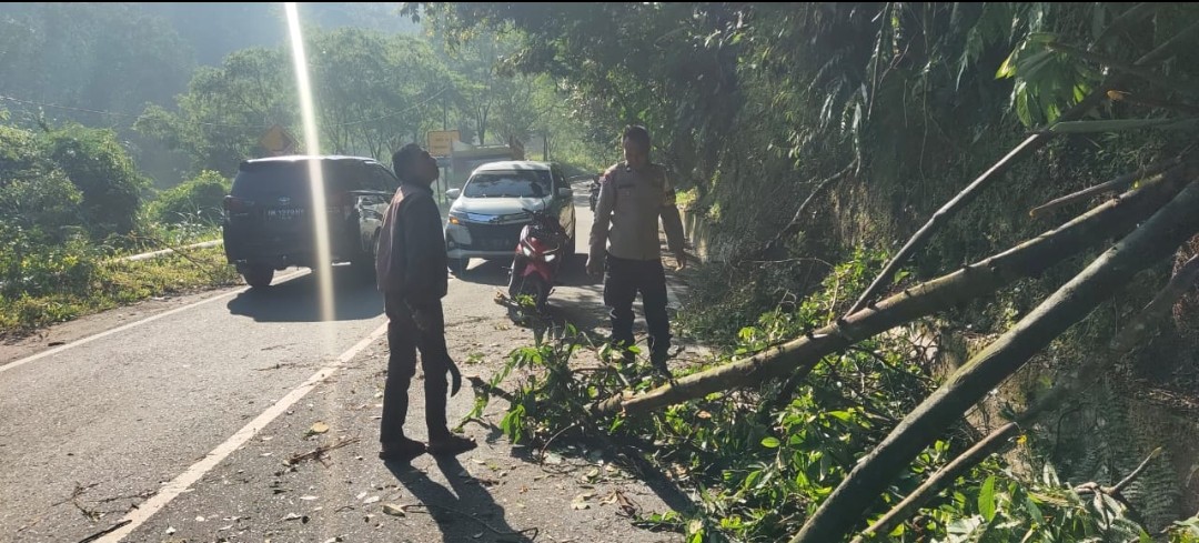 Selain membantu membersihkan cabang pohon yang berserakan Bhabinkamtibmas juga melakukan pengaturan lalu lintas guna mencegah terjadinya kemacetan, Bhabinkamtibmas juga menyampaikan bahwa ini merupakan wujud Polri hadir dan bentuk kepedulian terhadap lingkungan serta memberikan kenyamanan bagi pengguna jalan, ujar Aiptu Herman.