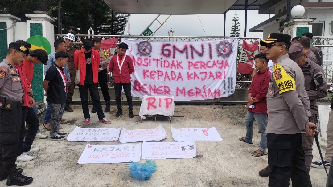 Puluhan Polisi amankan aksi unjuk rasa mahasiswa GMNI di kantor Kejaksaan Negeri Bener Meriah