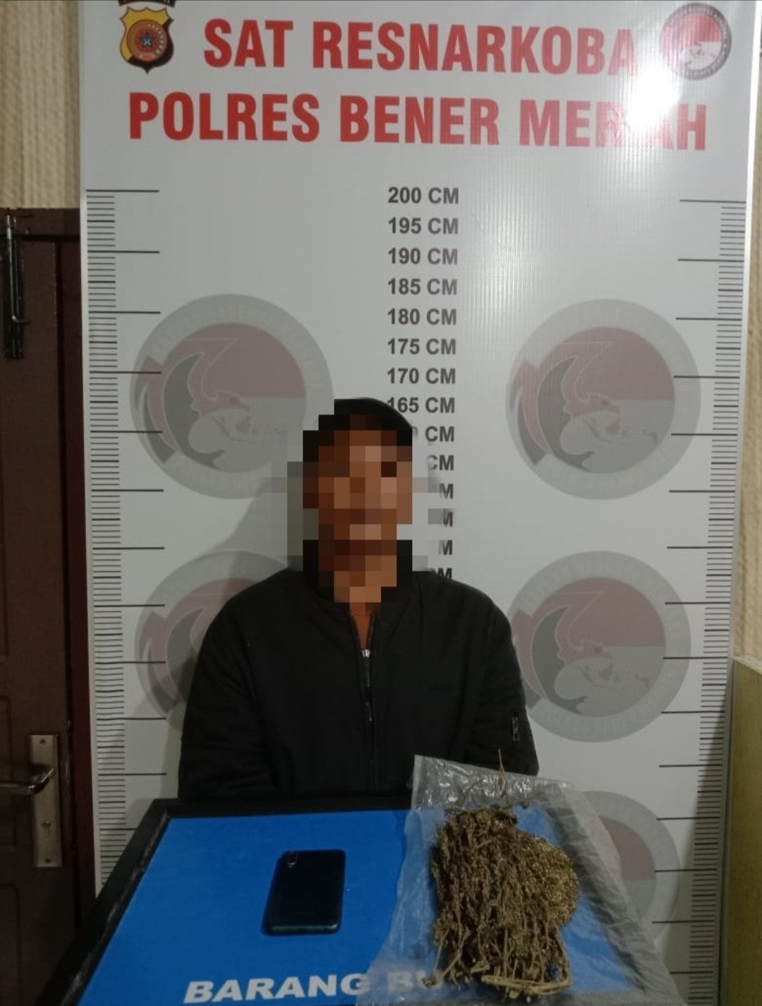 Bener Meriah- Satuan Reserse Narkoba Polres Bener Meriah, berhasil mengamankan satu orang pria warga Kampung Bener Ayu Kecamatan Wih Pesam Kabupaten Bener Meriah, yang diduga menyalahgunakan narkotika jenis ganja.