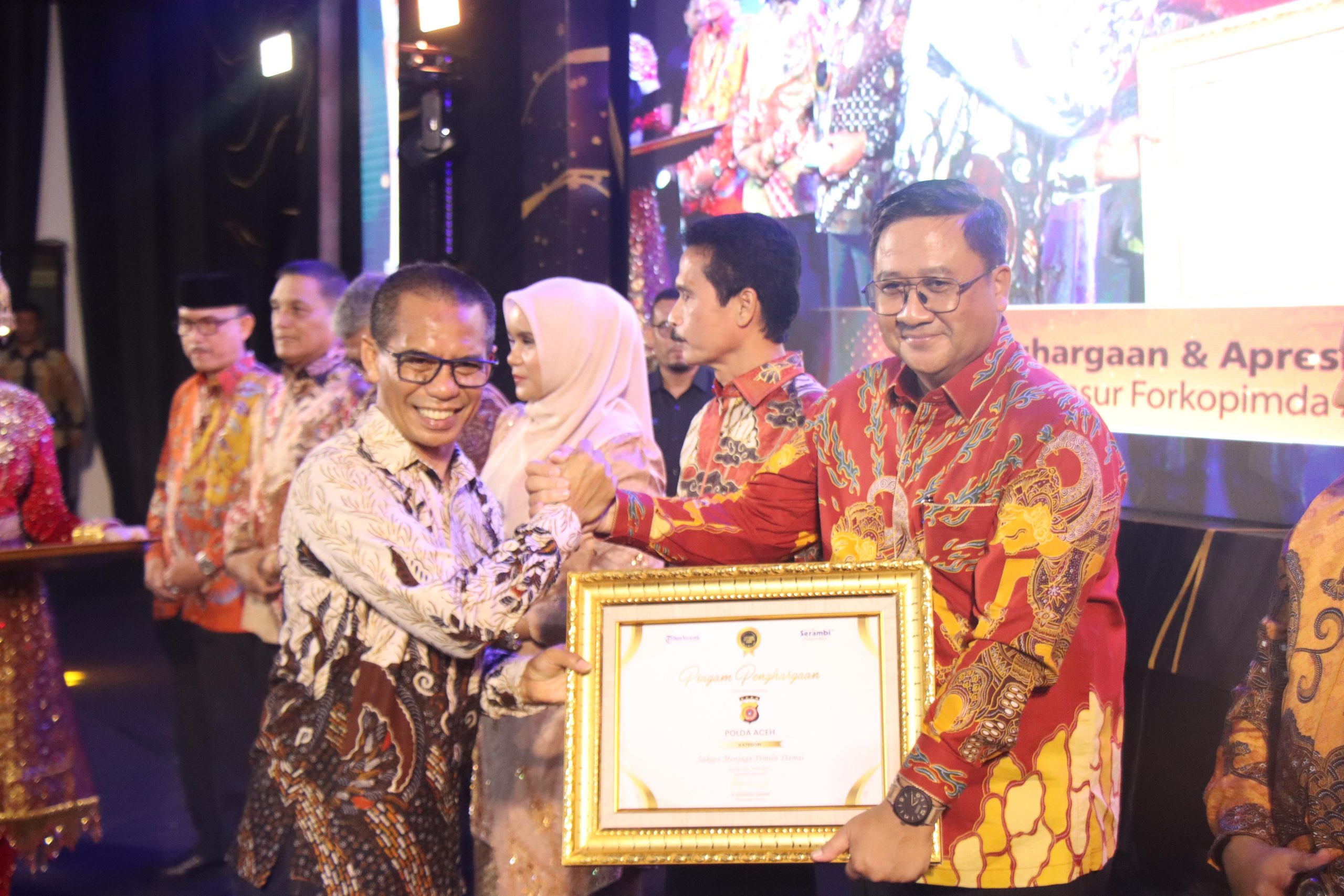 Banda Aceh — Kapolda Aceh Irjen Achmad Kartiko menerima penghargaan pada malam puncak Serambi Awards 2024. Penghargaan itu diserahkan langsung oleh _chief operating officer_ (CEO) Tribunnews Dahlan Dahi di Gedung AAC Dayan Dawood Universitas Syiah Kuala, Kota Banda Aceh, Jumat malam, 31 Mei 2024.